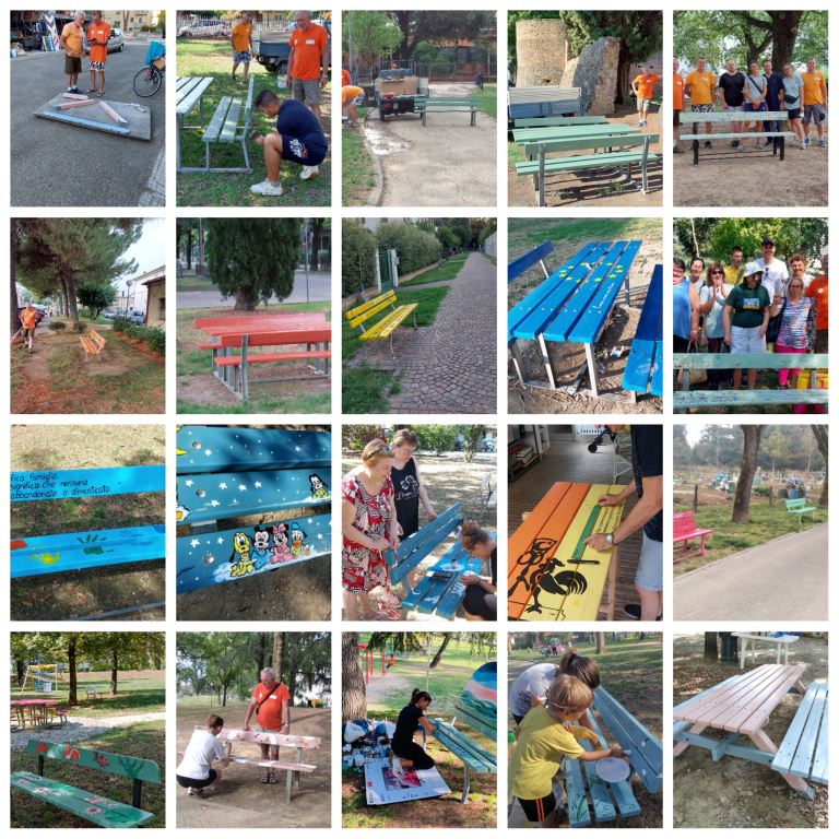 I dati del progetto : ristrutturate 54 panchine, 10 tavoli con due panchine laterali di cui disegnate l’80 %, dislocate nei parchi : Biancini, Ravaioli, De Gasperi, via Giovanni XXIII, viale Umberto I e in altri luoghi e strade del paese. Costo, complessivo, circa 1500 €. Oltre 350 ore dedicate dai volontari, gratuitamente e tante altre per i disegni.